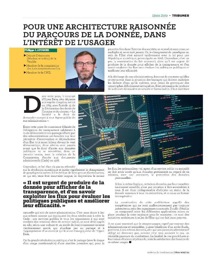- 15 janvier 2021, Opinion internationale, https://www.opinioninternationale.com/2021/03/20/numerique-de-la-servitude-volontaire-a-la-dictature-tribune-de-philippe-latombe-depute-de-vendee_84402.html